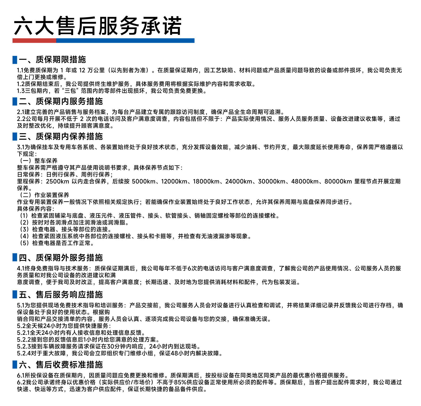 六大售后服务承诺